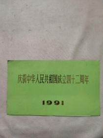 请柬:【庆祝中华人民共和国成立42周年】订于一九九一年九月三十日晚七时三十分在人民大会堂举行文艺晚会,敬请出席, 首都国庆文艺晚会办公室。