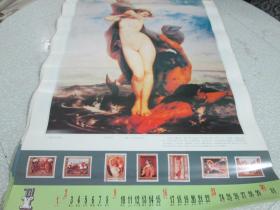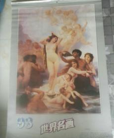 旧藏老挂历,世界名画,维纳斯的诞生1993年