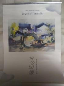2001年挂历 水乡印象 著名画家施国福作品(老挂历、绘画参照物)