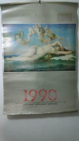 怀旧老挂历~1990年世界名画摄影题材老挂历全民俗收藏品、总第555号