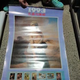 老挂历 1993年名画与集邮挂历