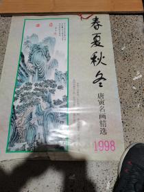 老挂历品相差缺页请仔细看图 1998年唐寅名画精选春夏秋冬书画挂历 不缺页 品相差