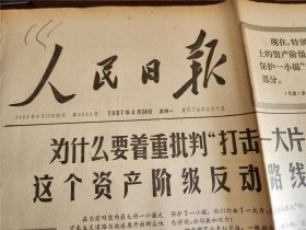人民日报 1967年4月24日 第一~六版(六省市无产阶级革命派代表交流夺权掌权斗争经验;青岛内燃机厂领导干部谈在批判资产阶级反动路线的斗争中站起来革命的经过;贵州红星拖拉机厂在革命的大批判中巩固革命的大联合;哈尔滨林业机械厂七车间革命职工干部制订“抓革命促生产公约”;今日将发生月全食;剥开所谓“爱国主义”英雄珍妃的画皮;我外交部紧急召见印尼使馆临时代办,最强烈抗议印尼军警劫持我总领事)