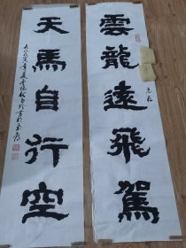 齐燕铭之父、曾任北京文史馆副馆长 齐之彪 书法对联《讬远山间得清趣,放怀天外极大观》一副(纸本软片,约3.8平尺*2,钤印:齐之彪印)HXTX413870