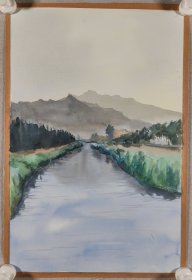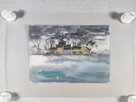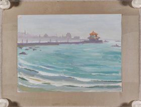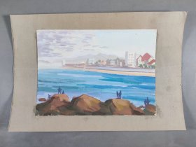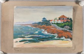 著名画家、曾任清华大学美院《装饰》杂志常务副主编、图书馆副馆长 郭-华 水粉画“海滨远眺”一幅(纸本,尺寸约19.5*27.5cm)HXTX412480