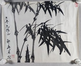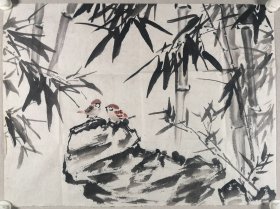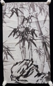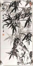 著名画家、曾任清华大学美院《装饰》杂志常务副主编、图书馆副馆长 郭-华 庚辰年(2000)国画《竹石》一幅(纸本软片,约平尺,钤印:华子) HXTX344556