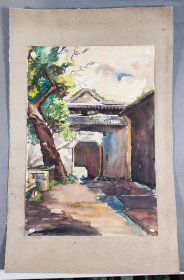 著名画家、曾任清华大学美院《装饰》杂志常务副主编、图书馆副馆长 郭-华 水彩画 “院落” 一幅(纸本,尺寸约39.5*27cm)HXTX418620