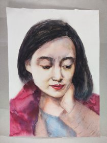 著名画家、曾任清华大学美院《装饰》杂志常务副主编、图书馆副馆长 郭-华 水彩画 “短发女人像” 一幅(纸本,尺寸约34*24cm)HXTX418623