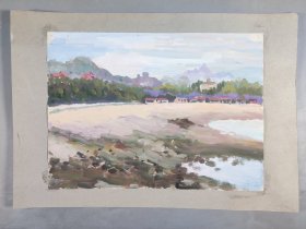 著名画家、曾任清华大学美院《装饰》杂志常务副主编、图书馆副馆长 郭-华 水粉画“沙滩一角”一幅(纸本,尺寸约25.5*34.5cm)HXTX412481