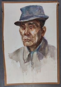 著名画家、曾任清华大学美院《装饰》杂志常务副主编、图书馆副馆长 郭-华 水彩画 “戴帽子的老人像” 一幅(纸本,尺寸约57*37cm)HXTX418622