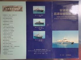 宁波花港高速客轮有限公司 00年代 16开折页 花港客轮航线及规划航线图。宁波花港高速客轮有限公司(原宁波花港有限公司)是于1985年成立的国内首家中外合资的高速客运企业。乘坐甬兴轮、甬旺轮、甬达轮,可从宁波至苏州、普陀山、上海、舟山,单程航线均在二小时之内。花港客轮售票网点一览表。甬兴轮、甬旺轮、甬达轮、西哈努克亲王、谷牧、客轮内景老照片。