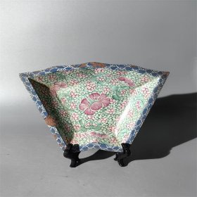 乾隆紫砂加彩缠枝莲角盘包老 紫砂壶紫砂笔筒紫砂盆紫砂罐紫砂