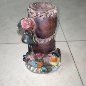 捏雕老瓷器,紫砂笔筒,粉彩多色釉。时期的。看图