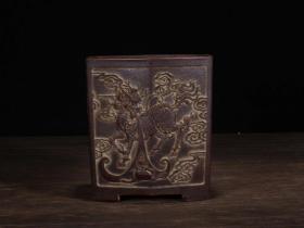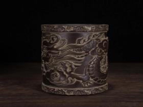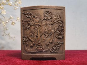 老紫砂紫砂笔筒麒麟笔筒书房摆件