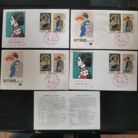 【日本邮票】近代美术シリーズ第7集 邮便切手 図案 ①「黒扉」②「アレタ立に」(近代美术系列邮票首日封第7集 图案 ①藤岛武二画「黒扇」②竹内栖凤画「那里,阵雨来了!」)4枚首日封8枚邮票