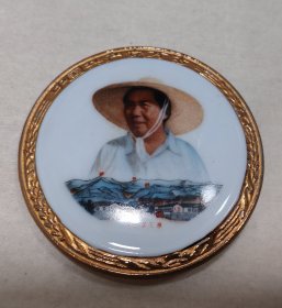 “中国共产党万岁-农业学大寨”金边,瓷毛主席像章