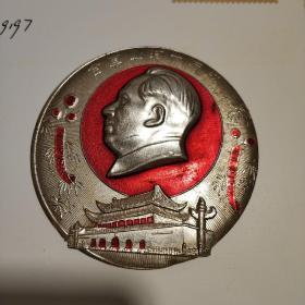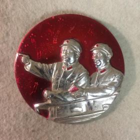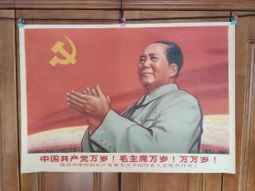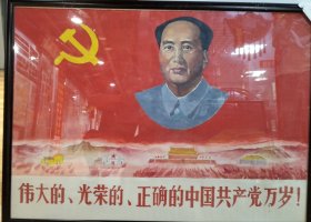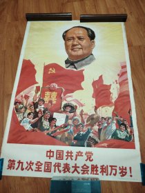 毛泽东主席挂象。在中国共产党第九次代表大会上。铭文内容。蒙古文。《伟大领袖毛主席万岁!万岁!万万岁!》《我们伟大的领袖毛主席在中国共产党第九次全国代表大会上作了重要的讲话》。