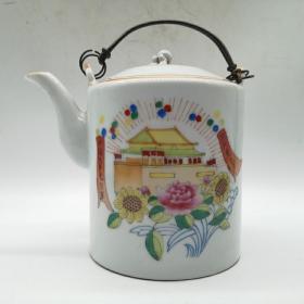 粉彩天安门图共产党万岁提梁壶