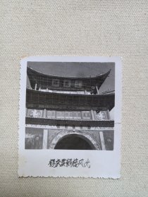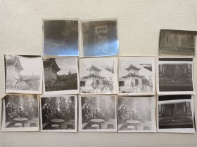 一般合影照第187--云南大理地区某景点楼阁处《一家人或者是同事/战友单身及合影老照片)》约1970-1990年代左右黑白原版老照片、老相片、老像片 、老资料一批13张合售(含3张底片)