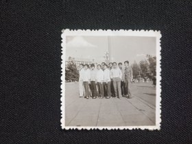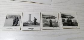 【老黑白照片(相片)】七十年代末期军人在北京《人民大会堂》《人民英雄纪念碑》《天安门》留影四张 合影和单照各两张 大会堂和天安门都挂有毛主席像 7*6cm