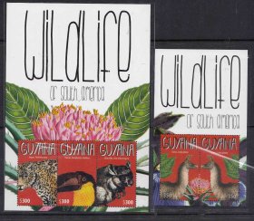 圭亚那2008年花卉 野生保护动物 大羊驼 龙猫 鸟 豹MS2+MS3
