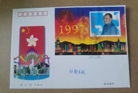 前任香港特首、第五任香港特别行政区区行政长官—林郑月娥 签名《1997年香港回归祖国纪念封》一枚,带签名《1997年7月1日香港回归普天同庆》卡1件,尺寸约23*16厘米。