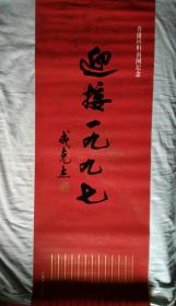 中国老年书画研究会会长李必达参展书法作品。迎接中国共产党第十七次全国代表大会胜利召开暨纪念中国人民解放军建军80周年和庆祝香港回归祖国10周年书画展览。作品内径净尺寸: 132x66公分。保真!