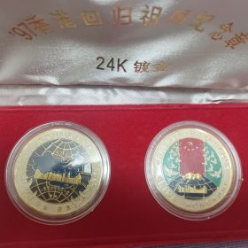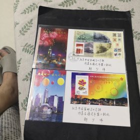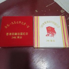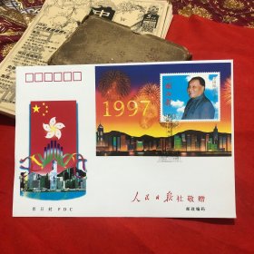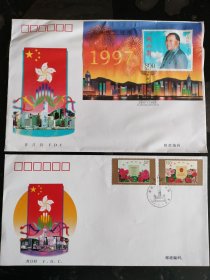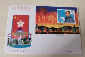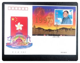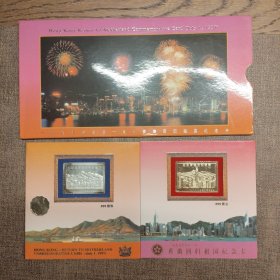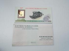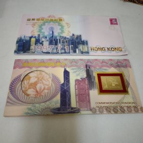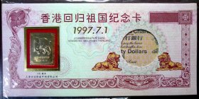 香港回归祖国纪念卡 (为纪念香港回归祖国,特发行此纪念卡,卡内镶嵌一至24k镀金金属邮票,限量发行3万张,具有较高的鉴赏与收藏价值)+纪念封(1997.7.1)