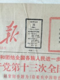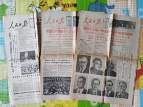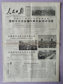 人民日报,1987年10月25日,党的十三大举行预备会议和主席团会议;11月2日,中共十三次全国代表大会胜利闭幕;11月3日,党的十三届一中全会产生中央领导机构。三份合售,各1-4版。