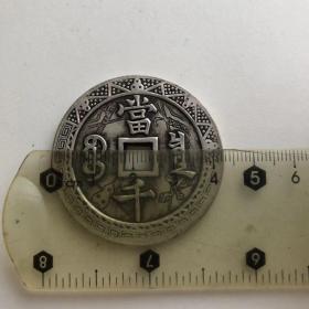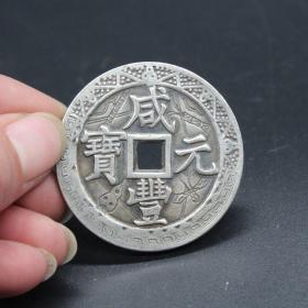 清朝咸丰元宝当千雕花镀银铜钱