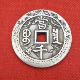 古代钱币铜钱大清五帝十帝钱币铜币咸丰元宝当千雕花白铜稀有花钱
