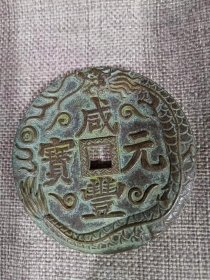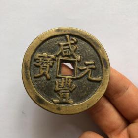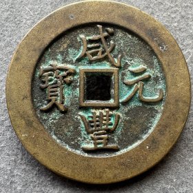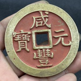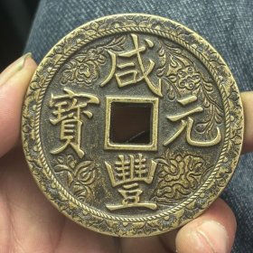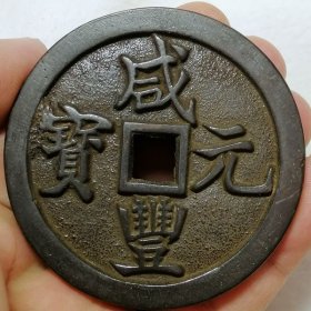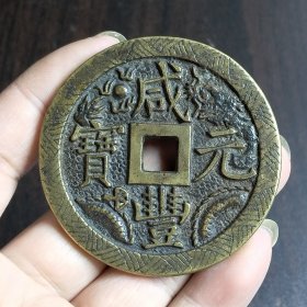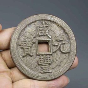 清代咸丰元宝当千老铜钱,直径6.2厘米,品相完好。铜质厚重,包浆自然,字迹清晰,边缘规整。传世老物件,收藏价值高。喜欢的朋友可以直接拍下.