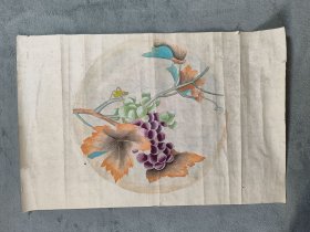 B41902号国画 工笔画写意花卉虫草 葡萄蝗虫 65×43cm 作者:佚名