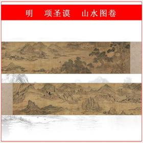 项圣谟山水图卷写意工笔山水国画真迹微喷仿古长卷装裱复制装饰画