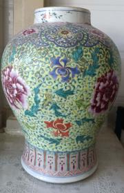 明嘉靖黄地珐华彩龙纹将军罐 47*30厘米