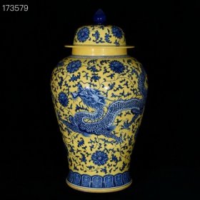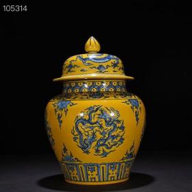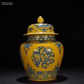 大明宣德年黄釉青花龙纹将军罐 古玩古董古瓷器