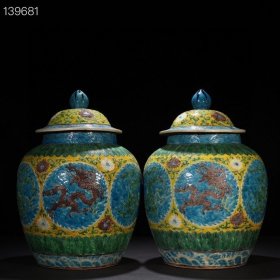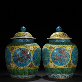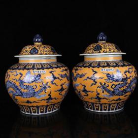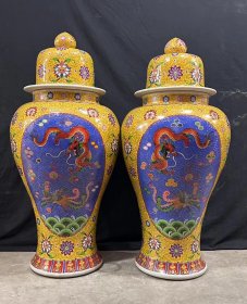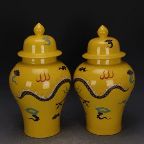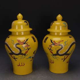 元帝王黄彩绘五彩龙纹将军罐一对