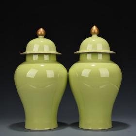 清雍正娇黄釉将军罐