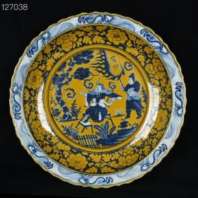 元黄地青花缠枝花蒙恬将军人物菱口盘
