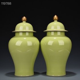 清雍正娇黄釉将军罐 38*20