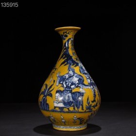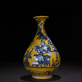 瓷器 元青花黄地青花蒙恬将军人物故事纹玉壶春瓶 34*20厘米