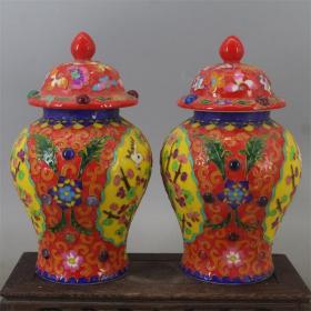 明黄地掐丝珐琅彩花鸟纹将军罐