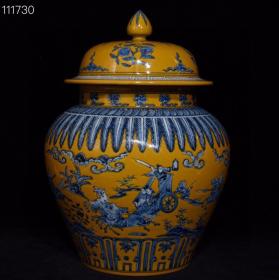 明成化黄地青花战将图将军罐