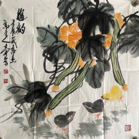 中国美术家协会会员,天津政协书画艺术研究会会员,北京赵士开绘草龙珠涨(作品保真,规格68*68)