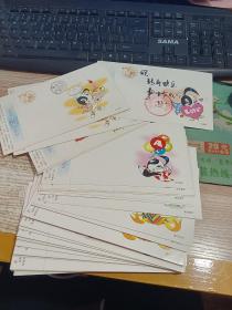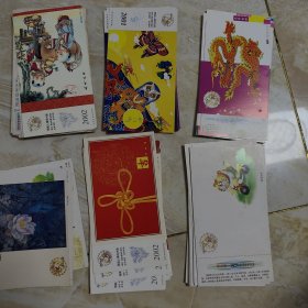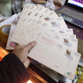 中国邮政贺年(有奖)明信片 ,面值60分,2002年10张,2001年11张,2000年13张,1997-1999年20张,实寄明信片23张。77张合售,在主卧抽屉