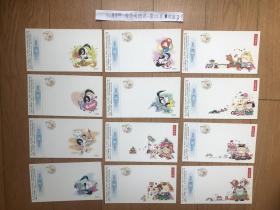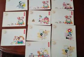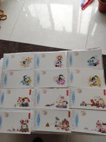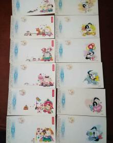 中国邮政贺年(有奖)明信片1997年牛片(改值)D05组全套:喜气洋洋、步步高升、一片真情、美妙歌声、生日快乐、奔向未来、万象更新、吉祥如意、祥和美满、大吉大利、年年有余、马到成功。