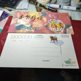 邮资明信片 1997 年 中国邮政 贺年 有奖 明信片 贺卡型 面值20分 未盖改值戳 带贺卡 中华人民共和国邮电部 发行 10 0318 5号邮资信封 未使用