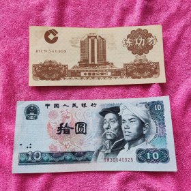 人民币 中国人民银行1980年出版 1980年四版十元纸币 壹枚 中国人民银行第四套人民币 拾圆 十元 10元 1980年 赠中国建设银行练功券