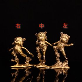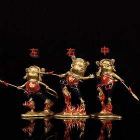 精工彩铜人物摆件哪咤三太子三款造型 彩绘工艺 尺寸 右长16厘米宽6厘米高17厘米重约0.78KG 中长17厘米宽5厘米高15厘米重约0.66KG 左长17厘米宽5厘米高14厘米重约0.67KG