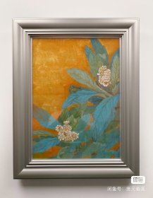 【枇杷花】日本岩彩画 纪子 静物画 装裱画